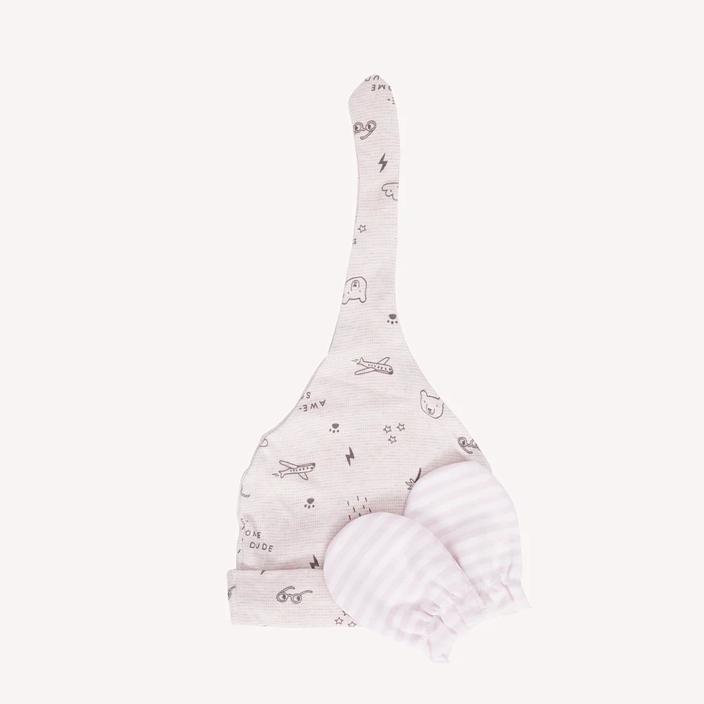 Γάντια & σκουφάκι. 100% Βαμβακερό σετ με γάντια απαλά για το δέρμα του μωρού και την αποφυγή τυχαίων γρατσουνιών και σκουφάκι για να διατηρεί το κεφάλι του μωρού ζεστό – 100% βαμβάκι